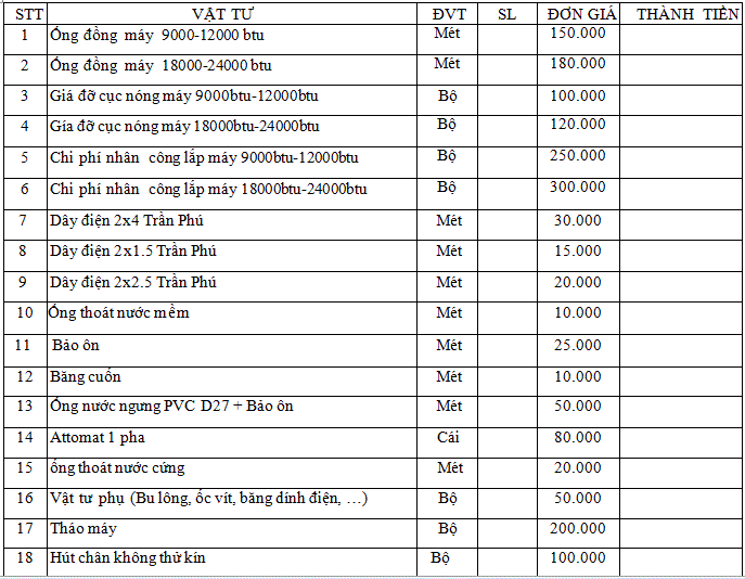 Bảng giá lắp đặt điều hòa Daikin rẻ nhất 2020