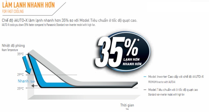 Với chế độ i AUTO-X làm lạnh nhanh hơn 35% so với các model tiêu chuẩn ở tốc độ quạt cao